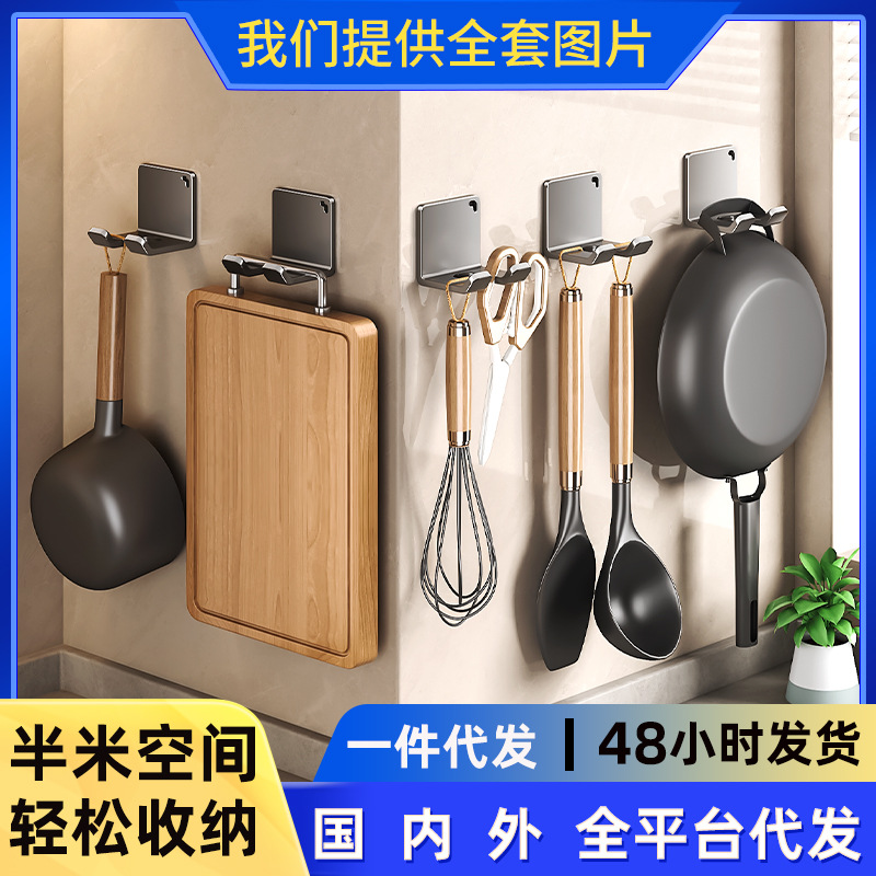 不锈钢厨房锅具挂钩免打孔锅铲勺子挂架壁挂钩刀架砧板菜板置物架