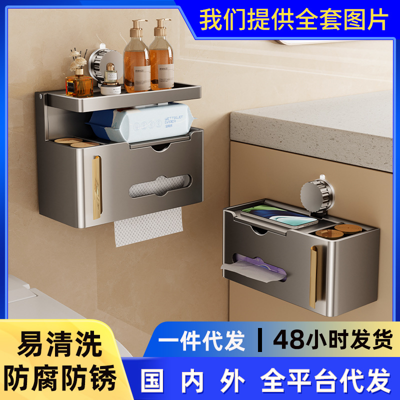 浴室卫生间纸巾盒免打孔厕所置物架壁挂式抽纸放置盒洗手间卷纸盒