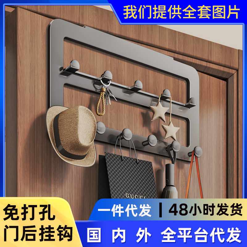 新品太空铝免打孔门后挂钩衣架家用门上衣服帽子壁挂式挂架勾子