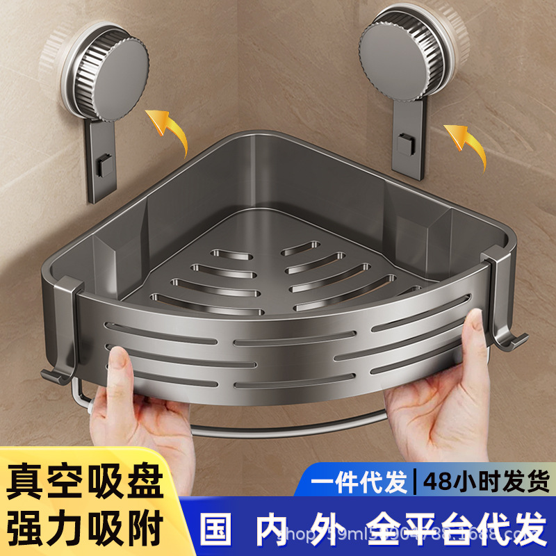 浴室吸盘免打孔三角篮家用墙角卫生间厕所墙壁挂带钩转角置物架子