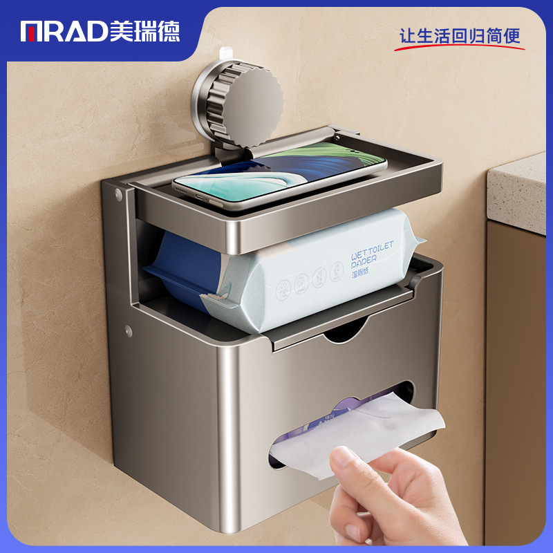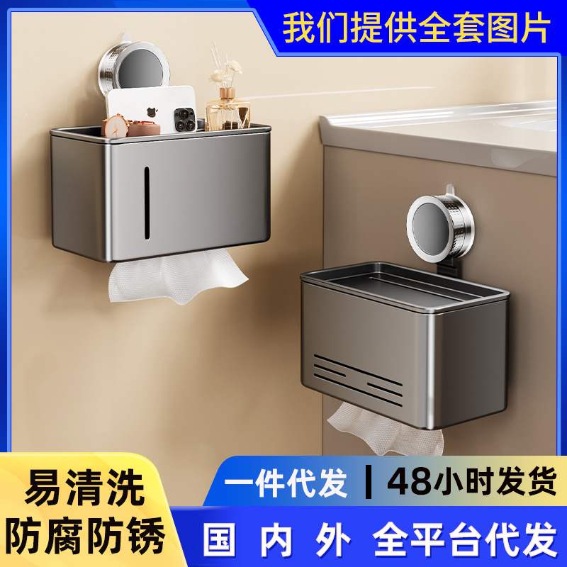 浴室卫生间吸盘式纸巾盒厕所置物壁挂式厕纸盒手机卷纸抽纸收纳架