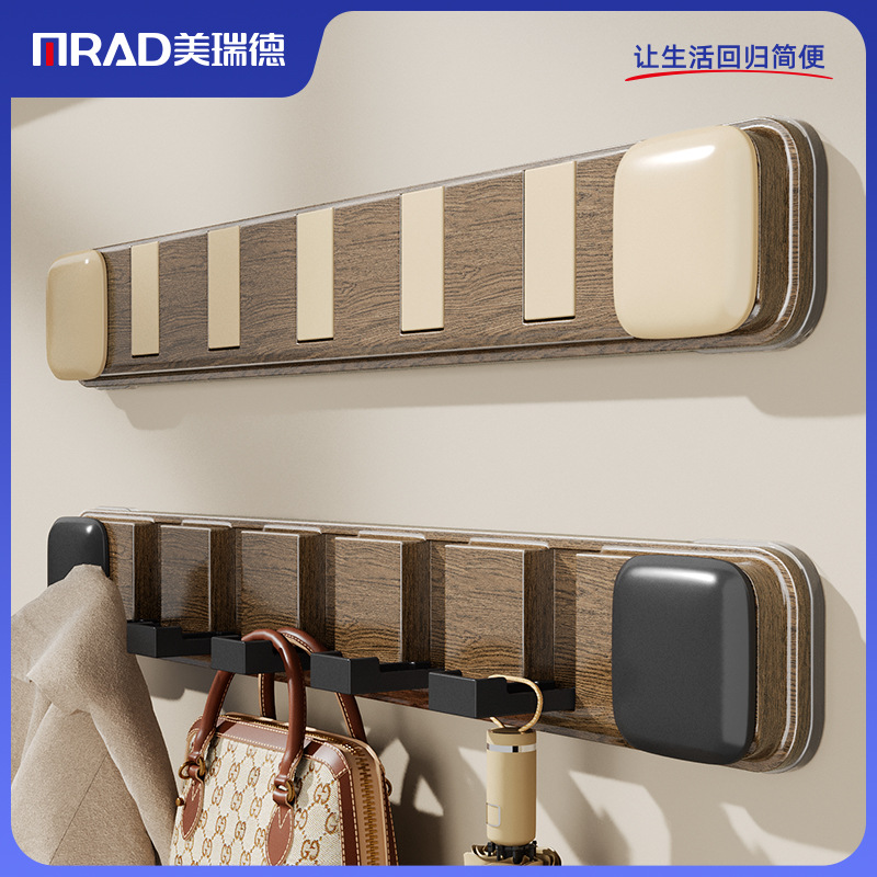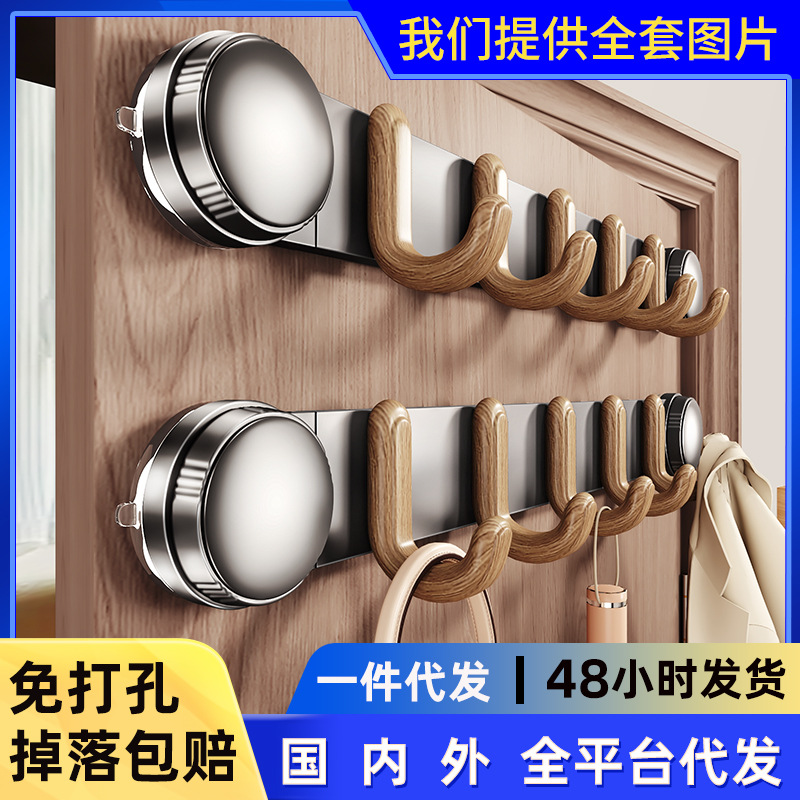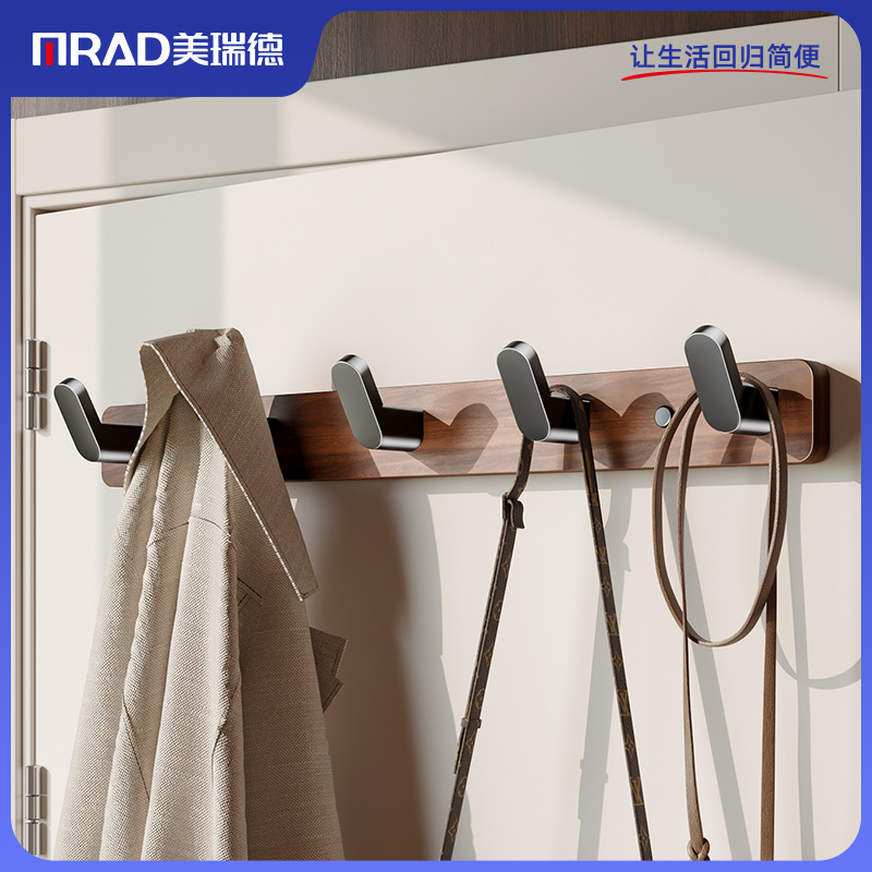 黑胡桃木挂钩免打孔卧室门后挂衣勾墙壁挂式衣服帽子挂衣钩子排钩