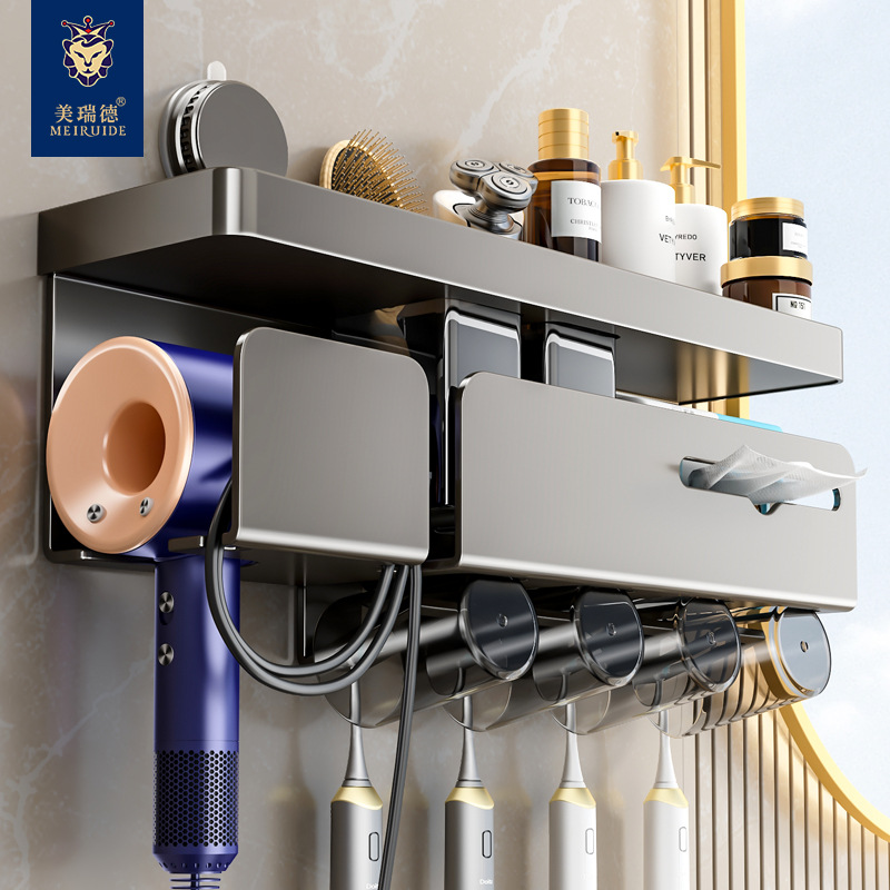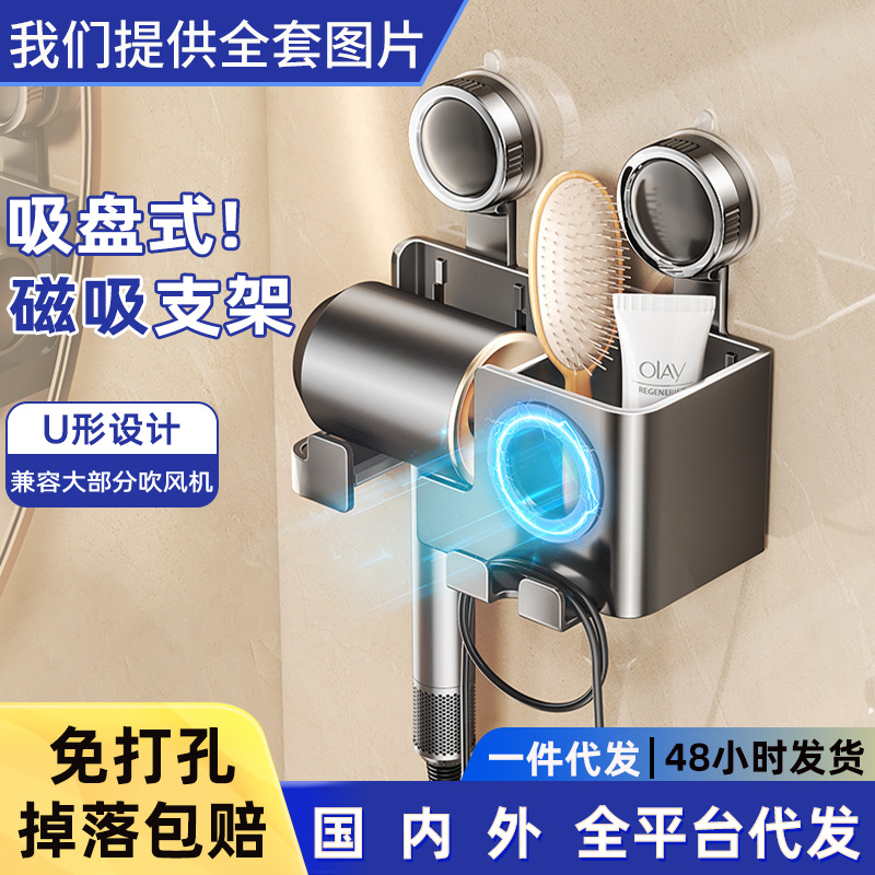 浴室卫生间免打孔吹风机支架纸巾盒收纳牙刷牙杯磁吸风嘴置物挂架