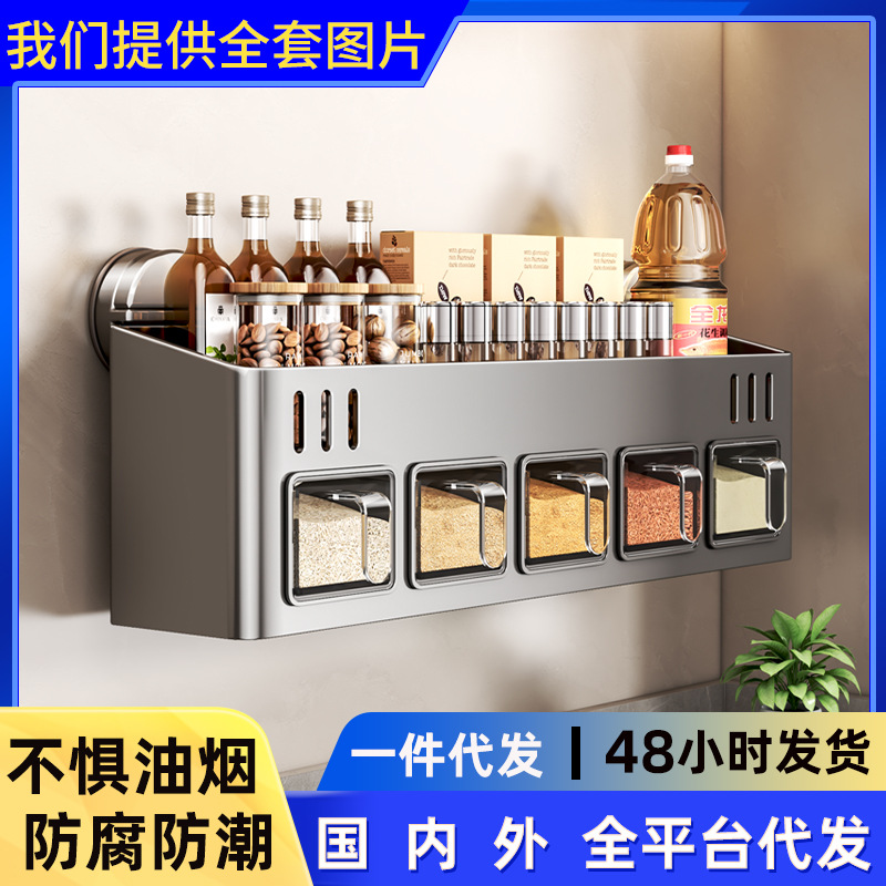 厨房家用强力吸盘调料盒免打孔调味品收纳整理免打孔墙面置物架