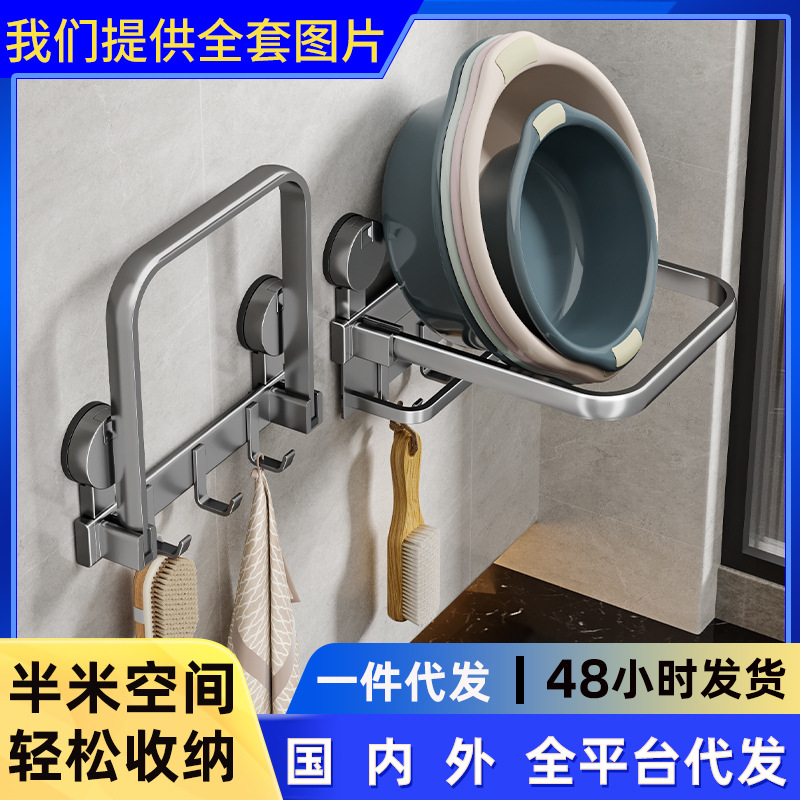 浴室卫生间吸盘可折叠脸盆壁挂收纳免打孔厕所家用挂钩挂杆置物架