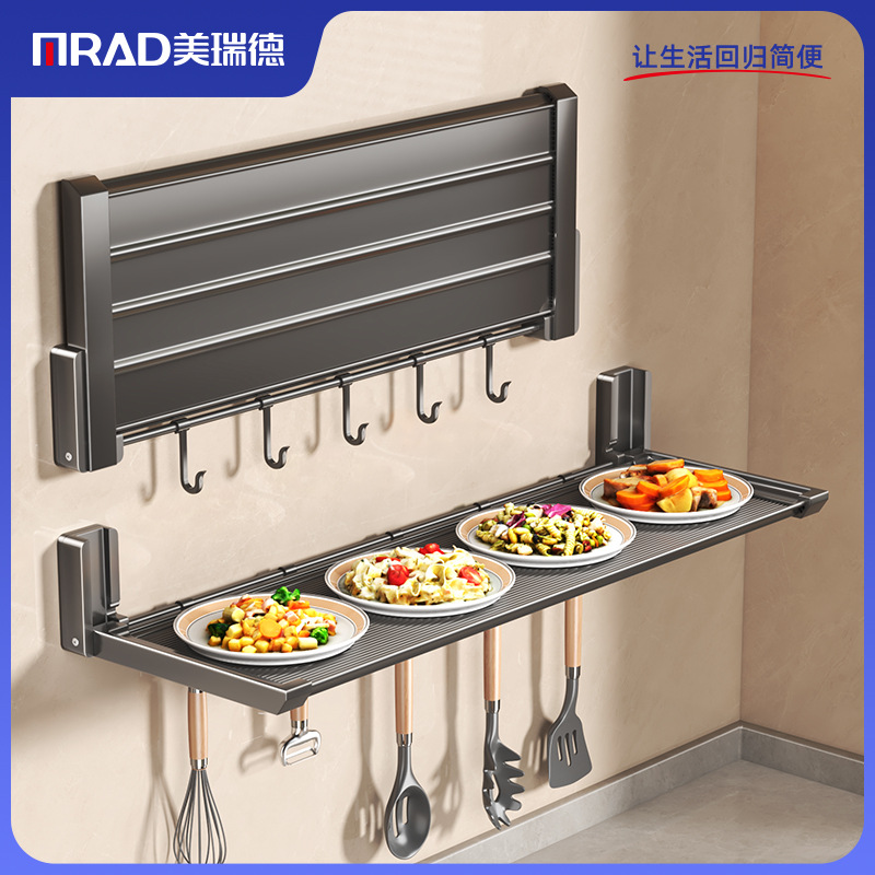 家用太空铝加厚厨房浴室折叠置物调料收纳免打孔壁挂式备菜置物架