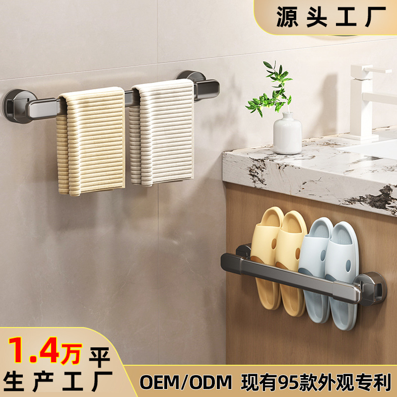 加工定制浴室卫生间吸盘免打孔拖鞋架壁挂式单杆毛巾挂收纳专利款