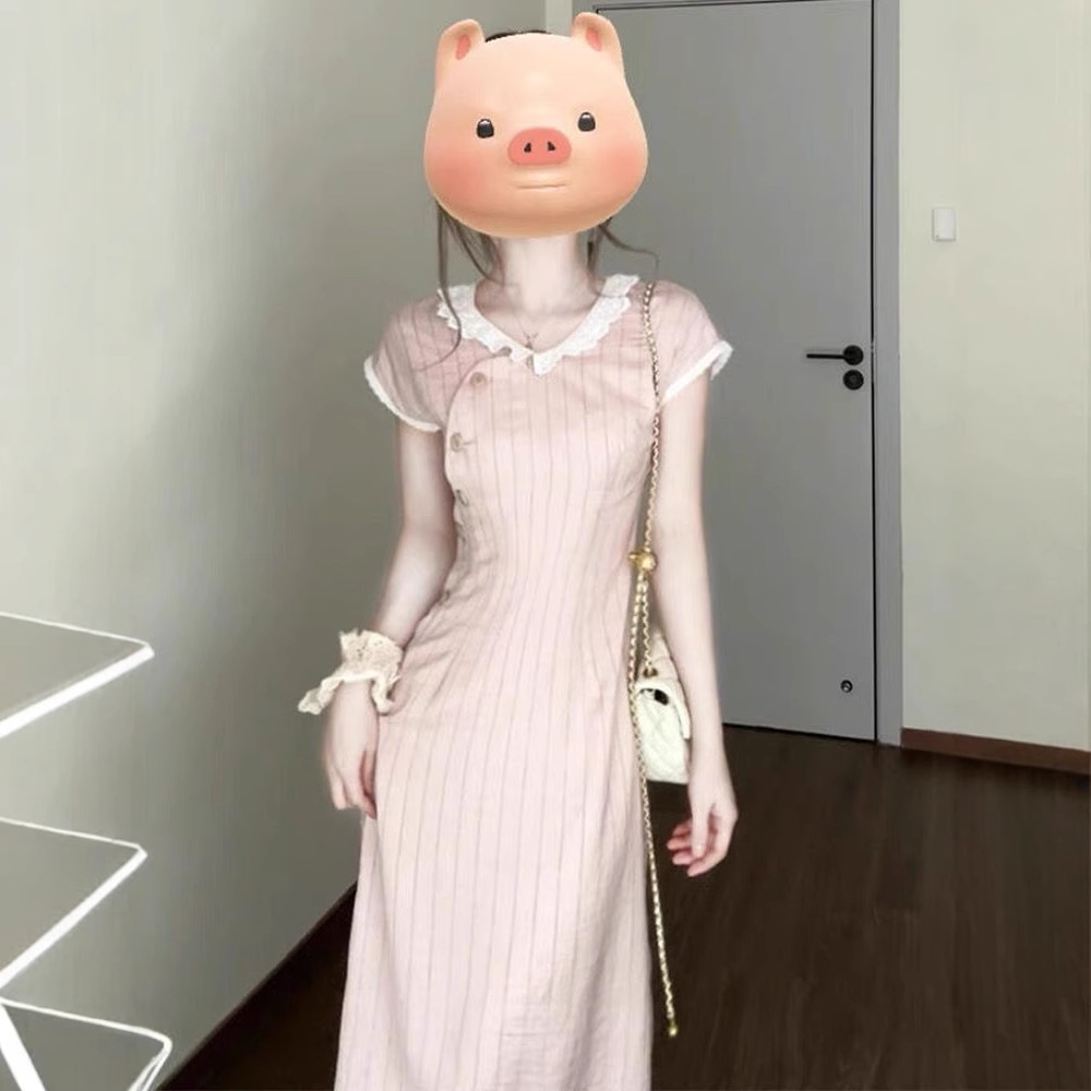 新中式短袖连衣裙女2025夏季新款国风改良版旗袍收腰显瘦中长裙子