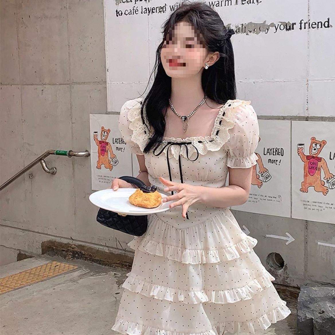 法式甜美温柔风波点蛋糕蓬蓬长裙女春夏季生日礼服收腰显瘦连衣裙