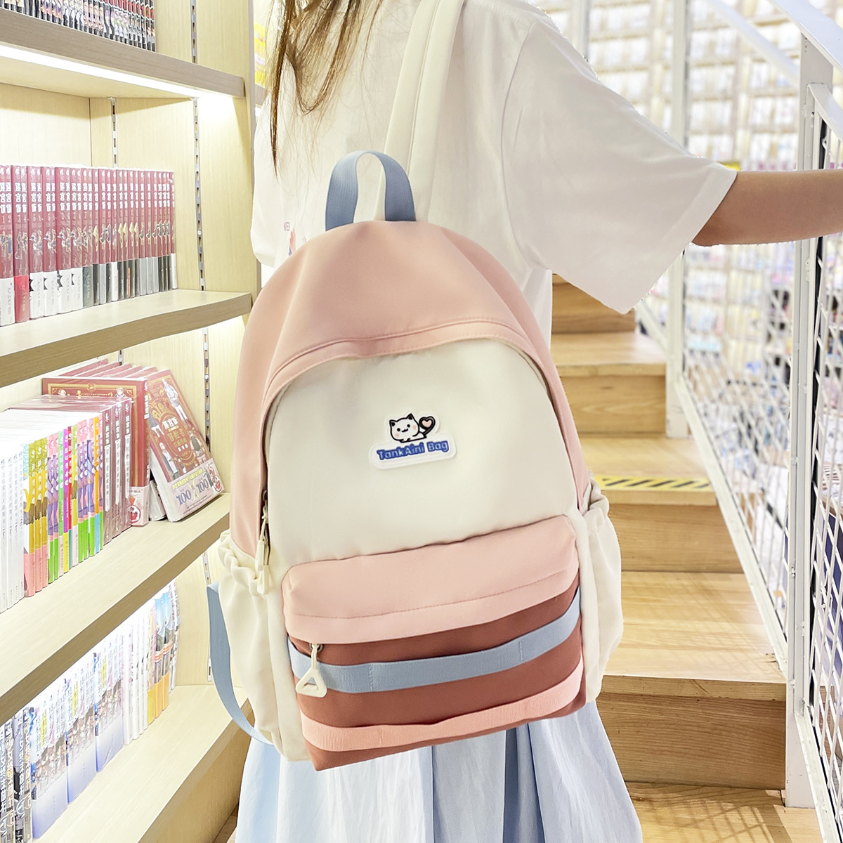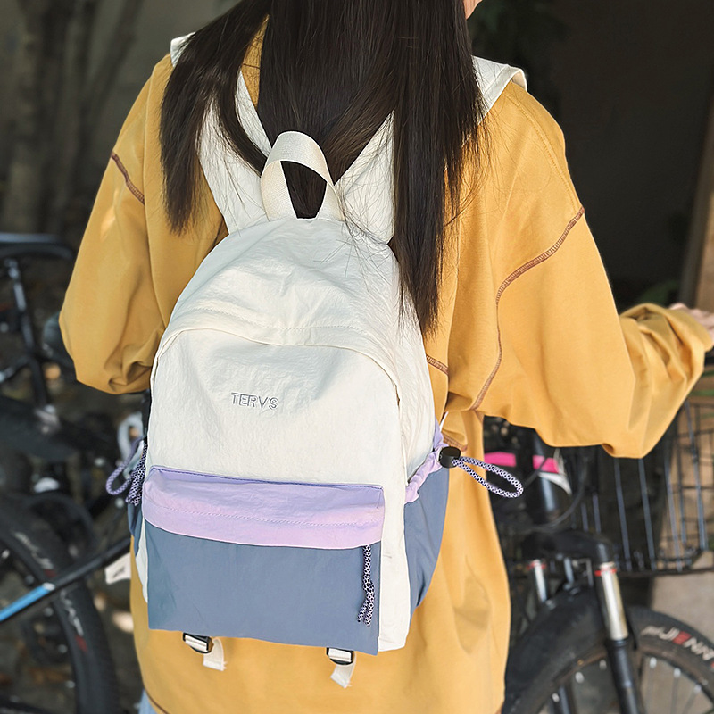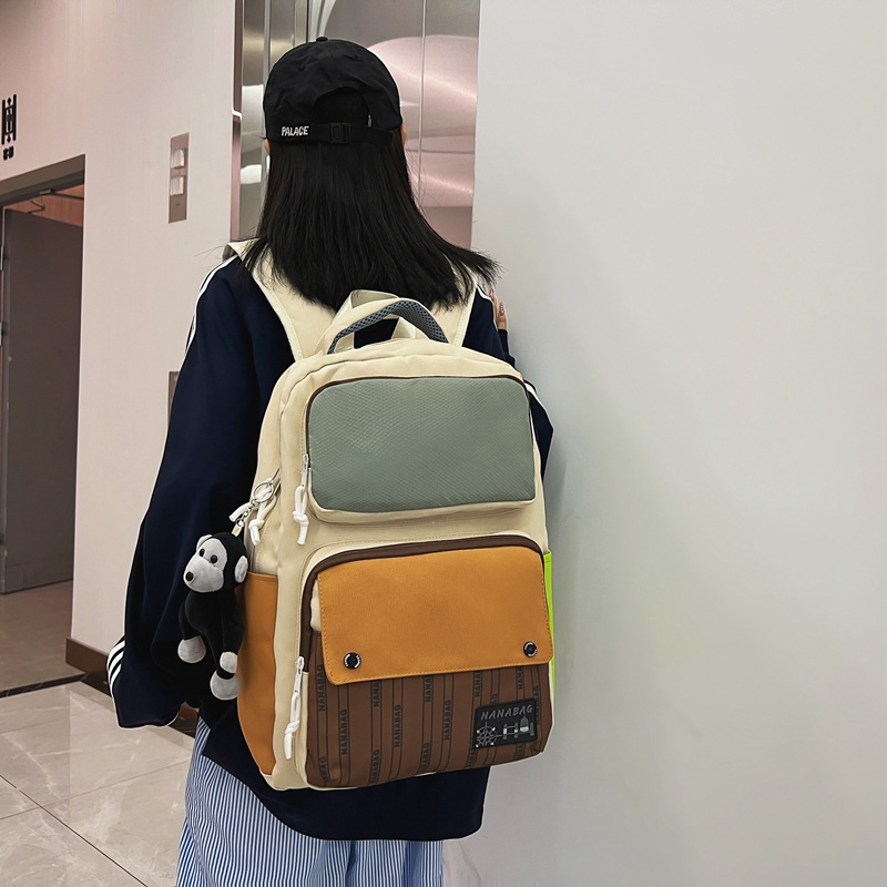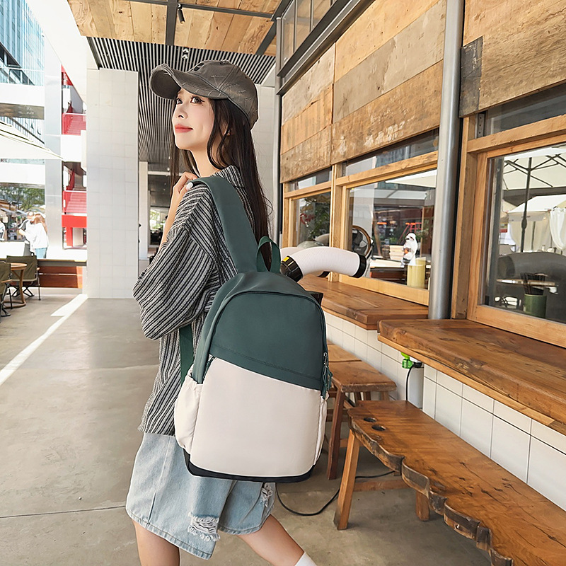 批发跨境森系校园初中高中大学生撞色拼接大容潮流休闲双肩背包