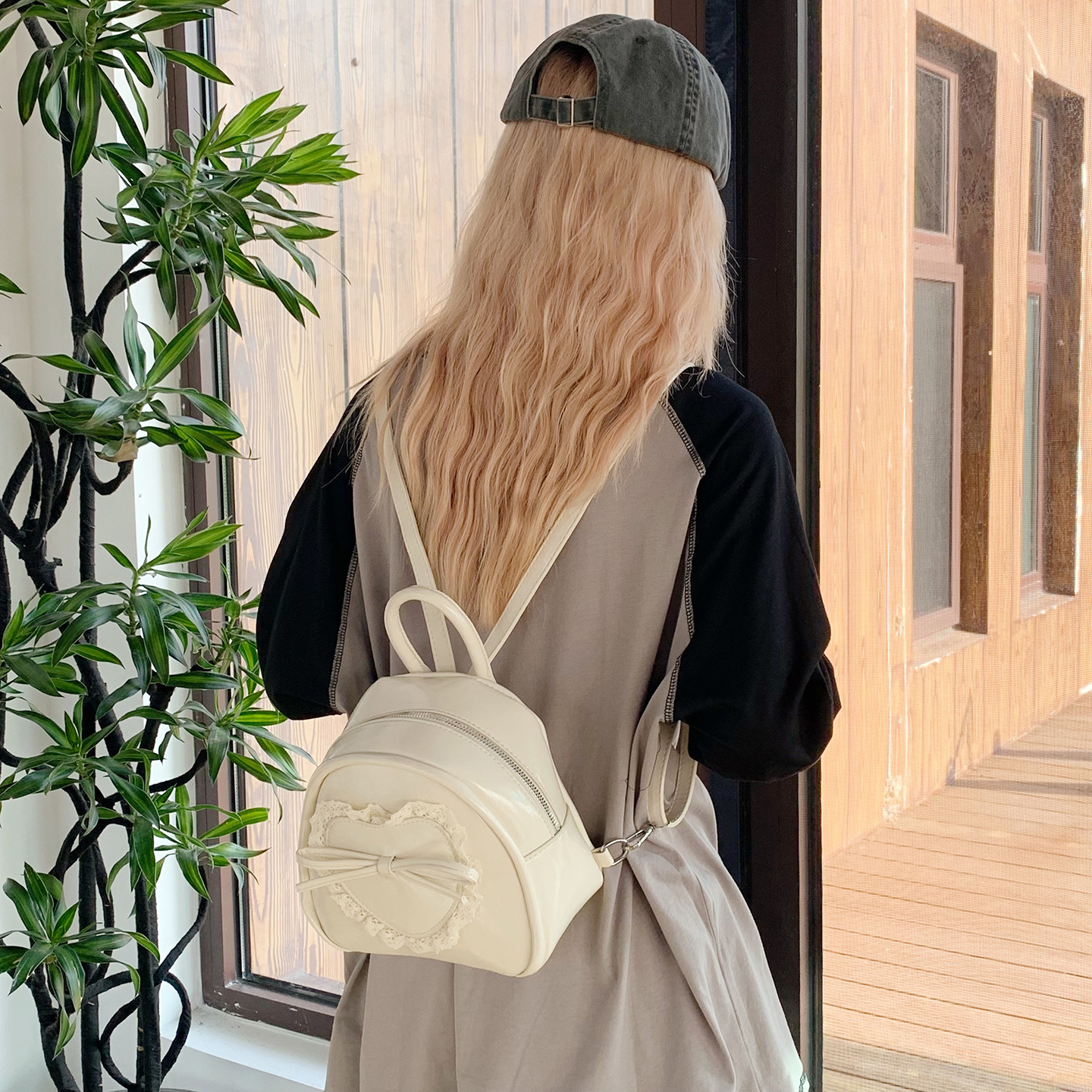 新款爱心双肩包女2025新款时尚少女风迷你书包秋冬复古磨砂背包