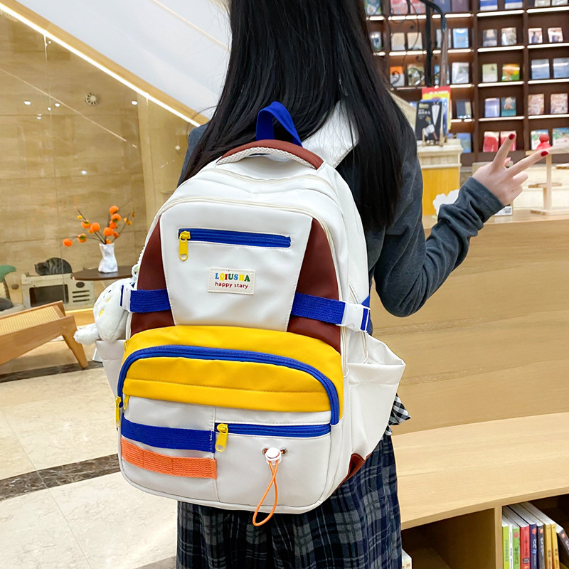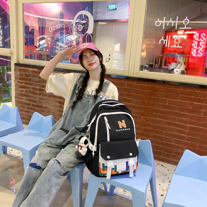 新款拼色大容量学生书包高颜值初中高中大学生女简约休闲电脑包