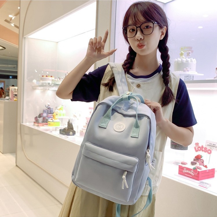 少女心撞色轻便小清新日系书包旅行休闲高颜值初高中生双肩包