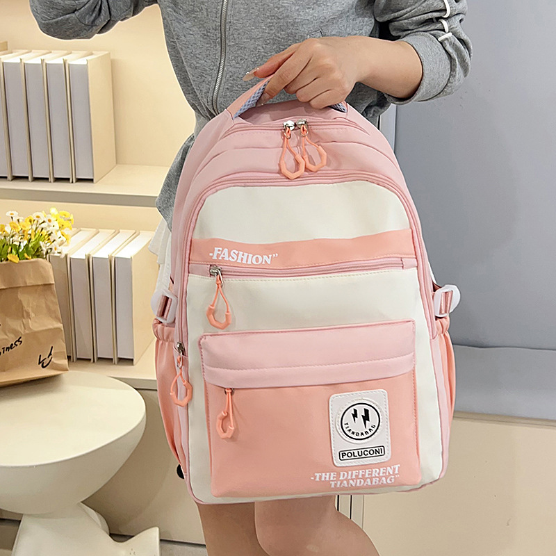 2025新款简约百搭休闲包撞色初高中学生书包大容量校园双肩包