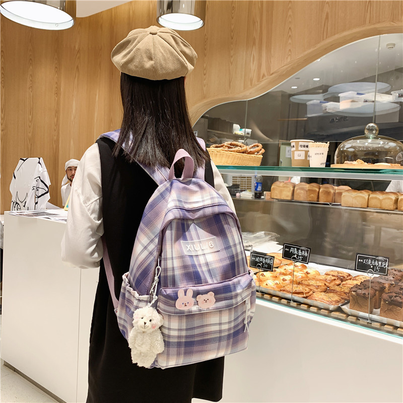 秋季休闲日系复古学生大容量高颜值格子款休闲双肩背