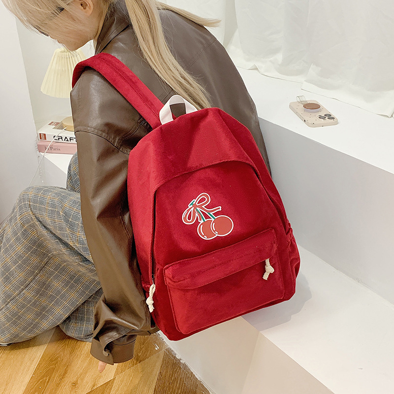 新款灯芯绒青春校园休闲背包百搭秋冬清新蝴蝶结女士休闲双肩包
