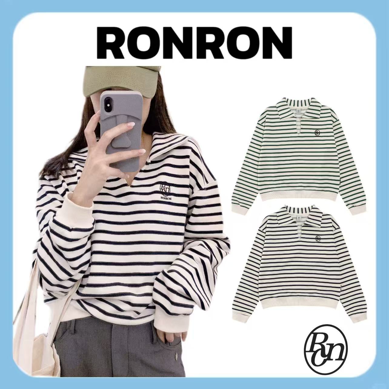 RONRON裴珠泫同款条纹卫衣翻领女宽松休闲POLO上衣秋冬一件代发潮