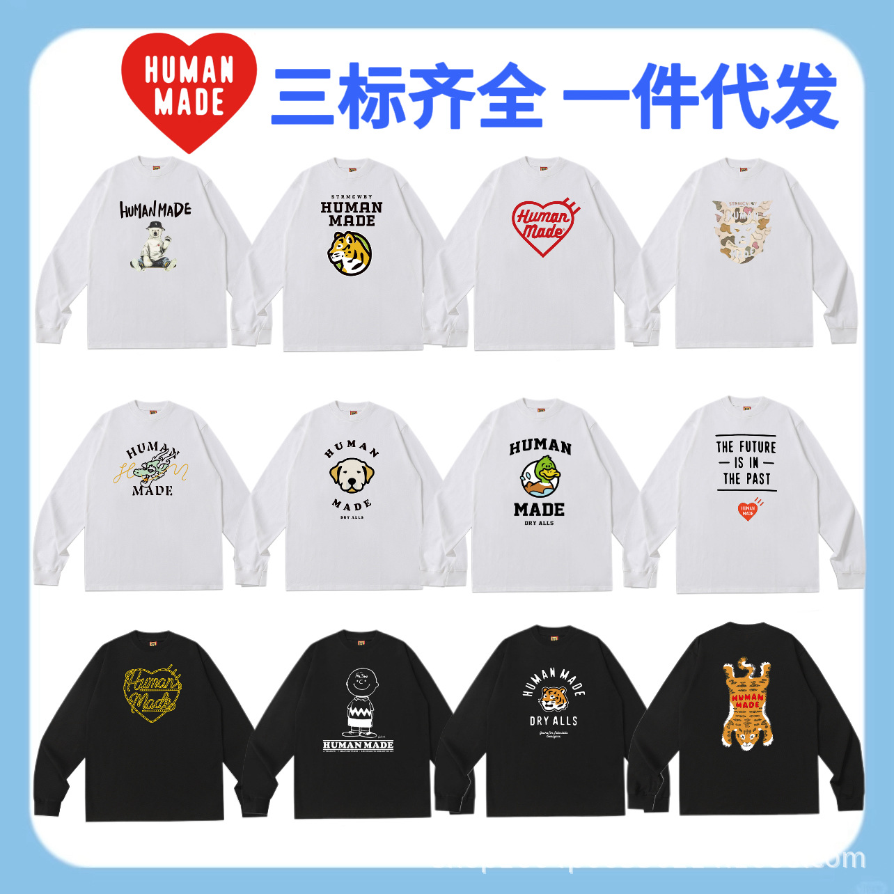 HUMAN MADE日系复古纯棉印花长袖T恤圆领上衣男女同款秋一件代发