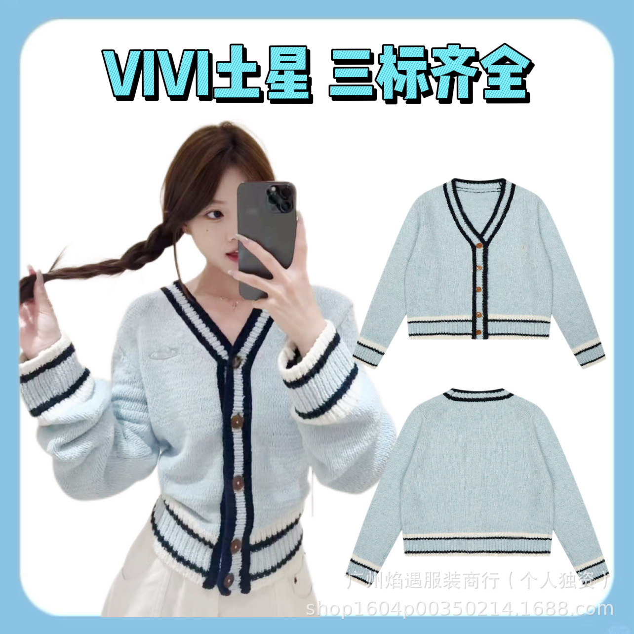VIVI土星撞色V领针织开衫宽松气质软糯毛衣外套女秋冬一件代发潮