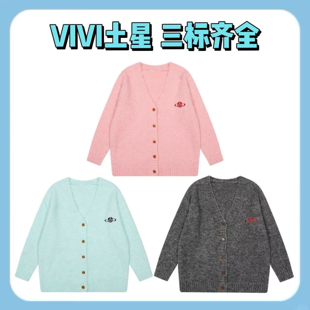 VIVI土星高版本秋冬羊毛衫刺绣开衫宽松休闲女V领外套一件代发潮