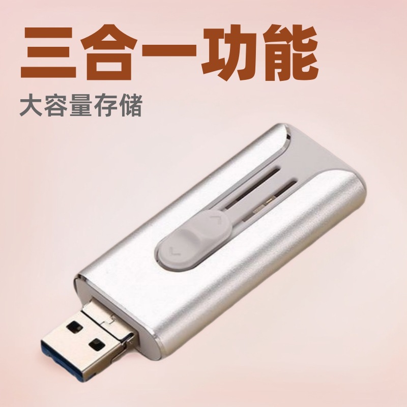 跨境三合一推拉手机U盘128g适用平果安卓电脑金属手机优盘大容量