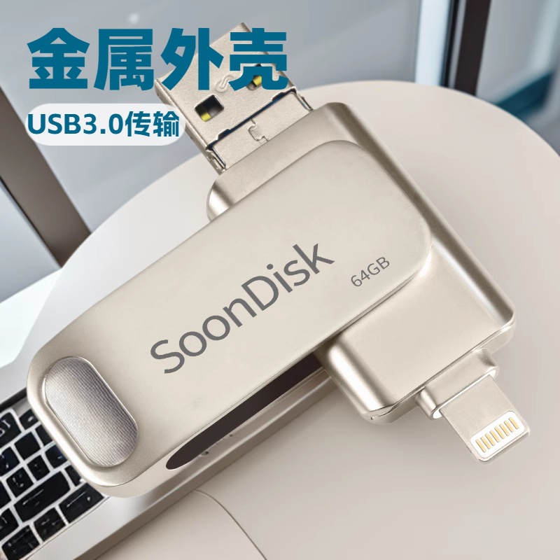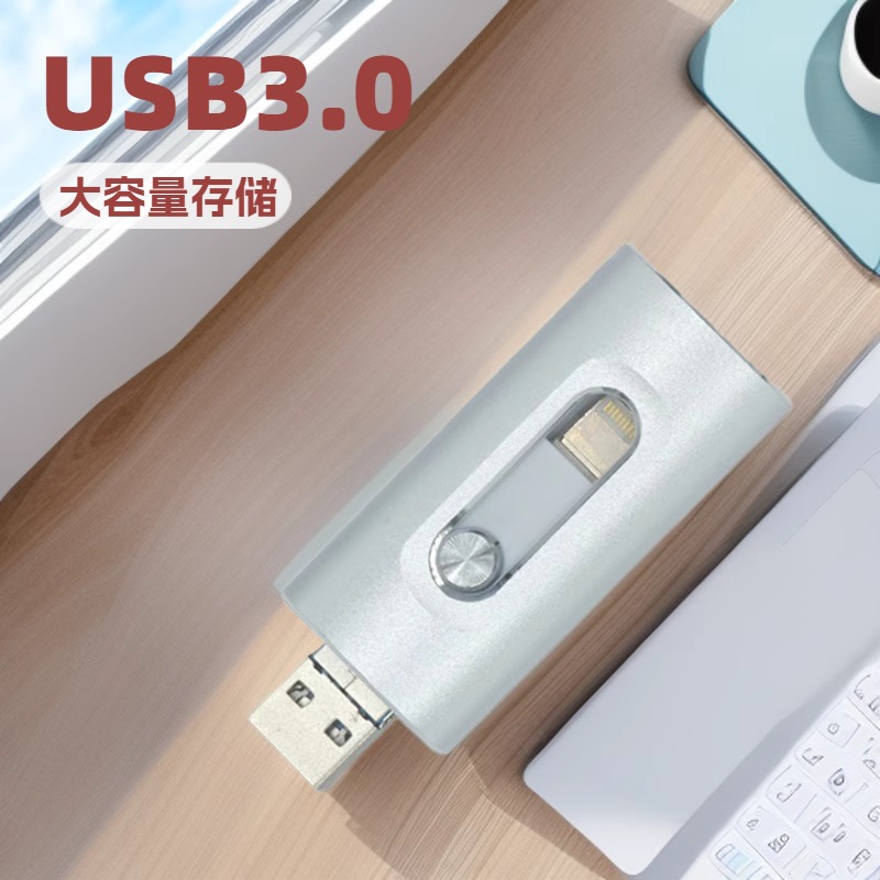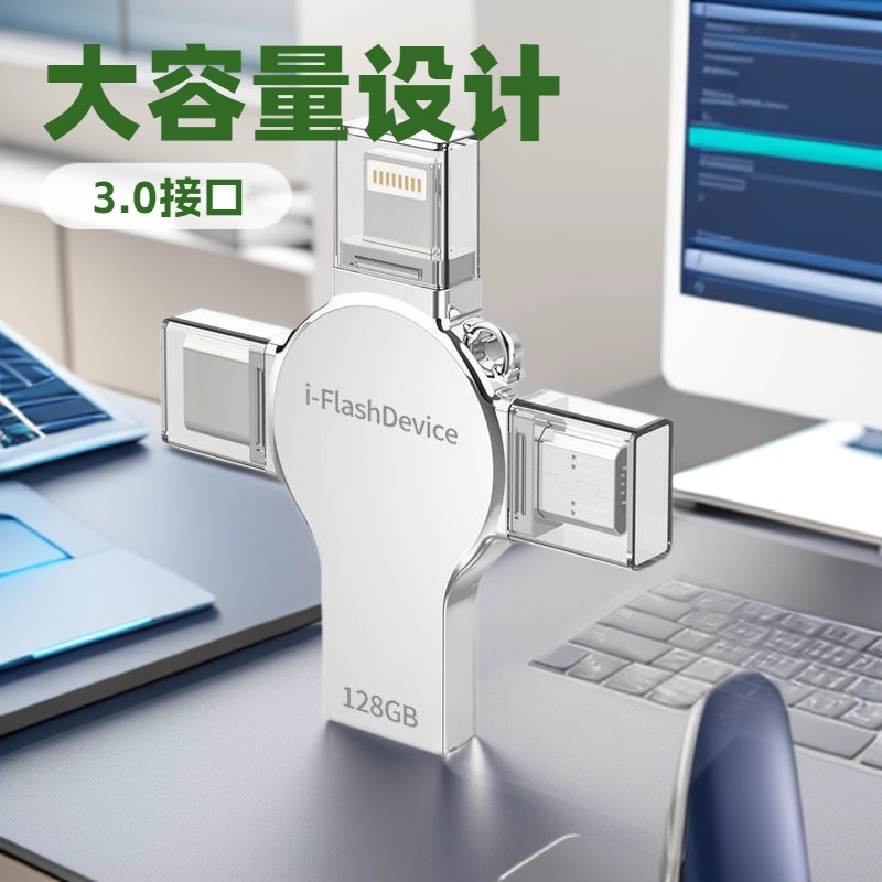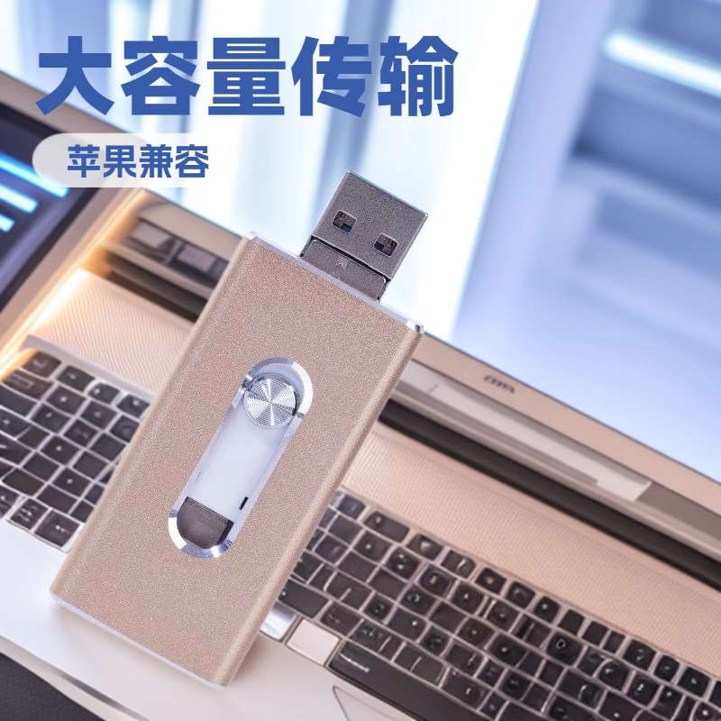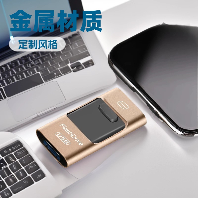 批发跨境适用平果手机高速金属推拉四合一U盘内存128g大容量typeC