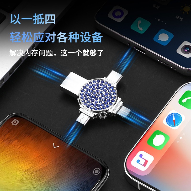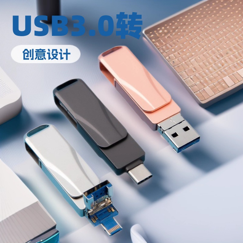 跨境四合一旋转手机优盘type-c平果安卓电脑金属手机u盘大容量usb