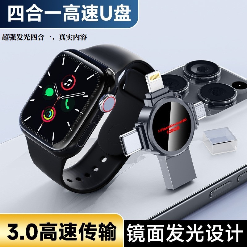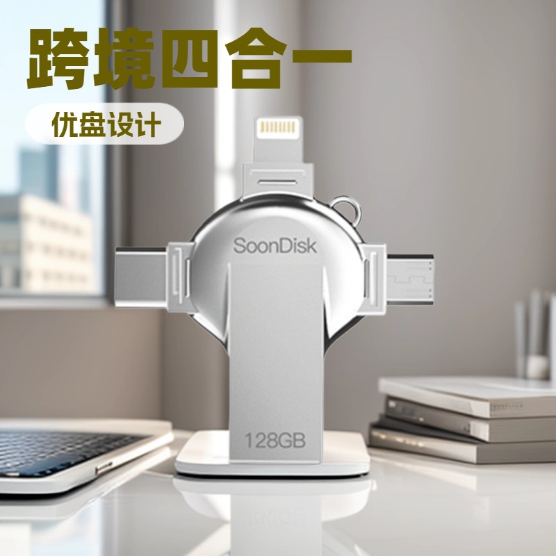 批发跨境旋转金属四合一手机U盘适用平果安卓128G大容量typec