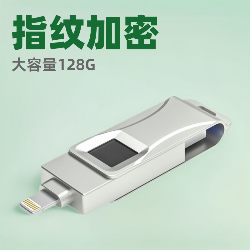 跨境指纹U盘平果手机电脑平板指纹加密两用手机优盘USB3.0高速