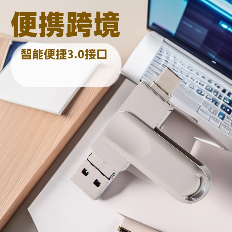金属旋转四合一手机U盘 256G Type-C平果安卓通用 高速跨境