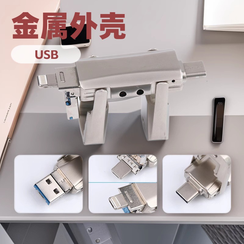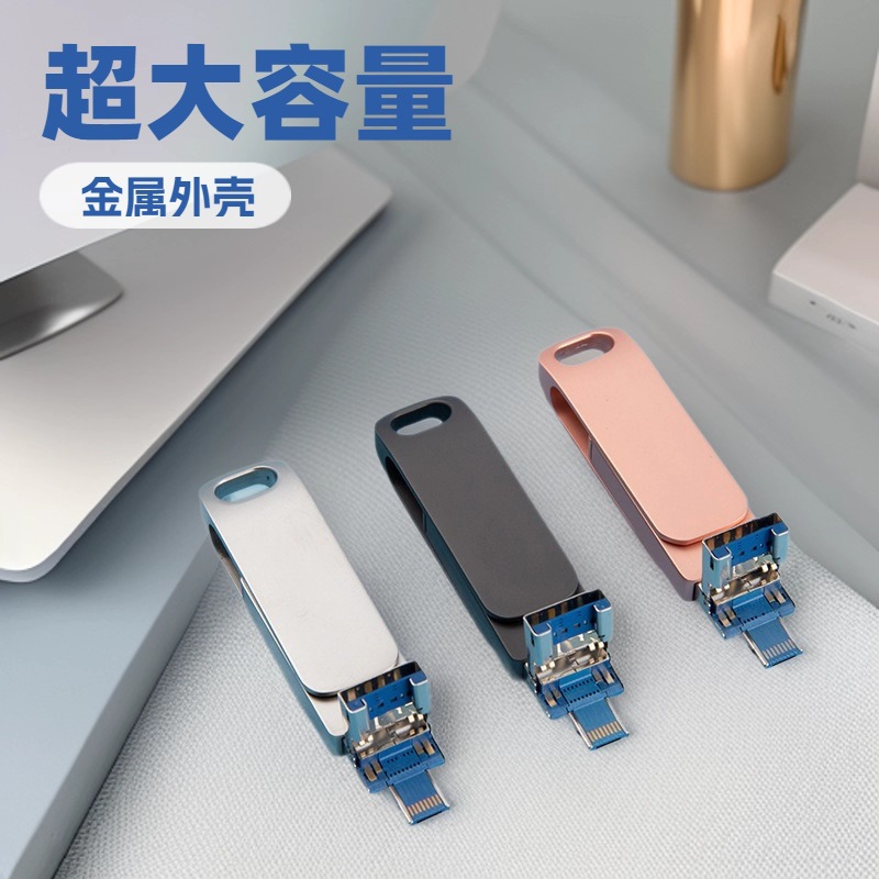 批发跨境旋转金属四合一手机U盘适用平果安卓电脑256g大容量typec