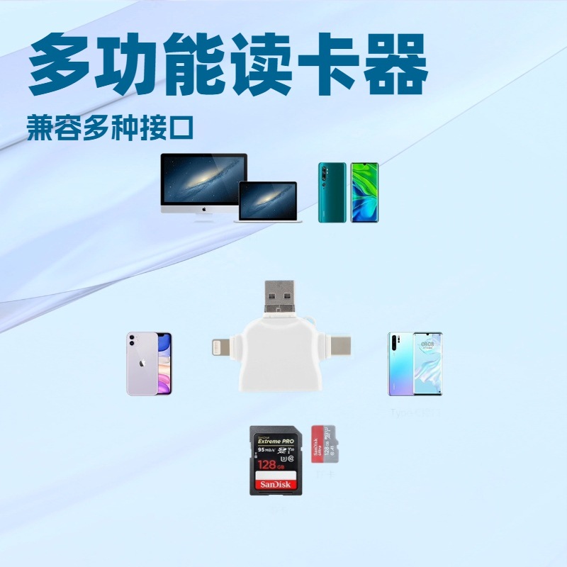 跨境热卖手机读卡器适用平果安卓type-c四合一SD多功能tf卡电脑