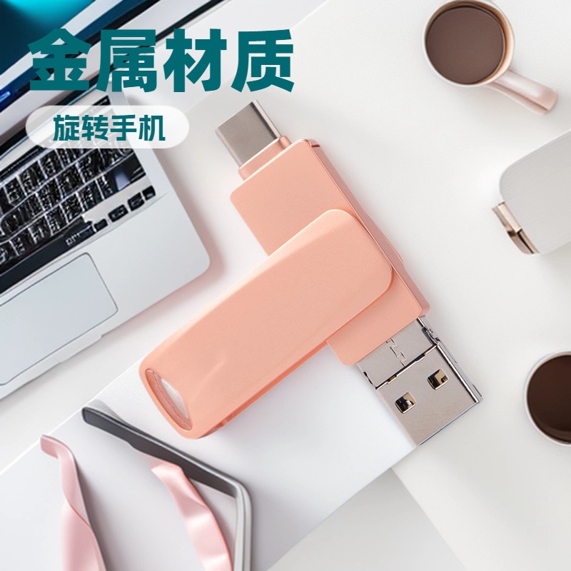 跨境金属旋转手机U盘适用平果安卓电脑TypeC四合一高速大容量优盘