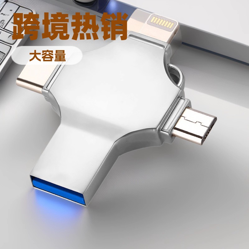 批发跨境金属四合一手机U盘适用平果安卓电脑OTG多功能Type-C外贸