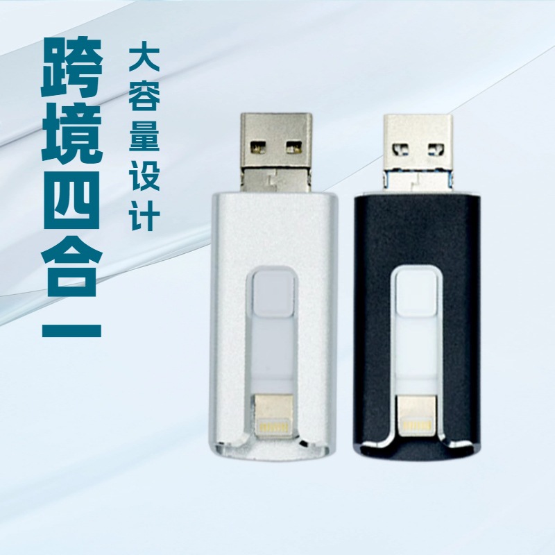 批发跨境推拉金属四合一手机U盘适用平果安卓256g大容量typec