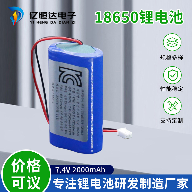 18650充电锂电池7.4V加保护板出线KC认证18650锂电池2000mah