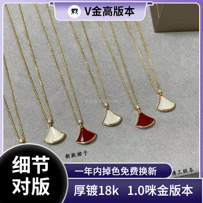 白贝母小裙子项链女18k玫瑰金高级精工版v金扇形红玉髓吊坠锁骨链