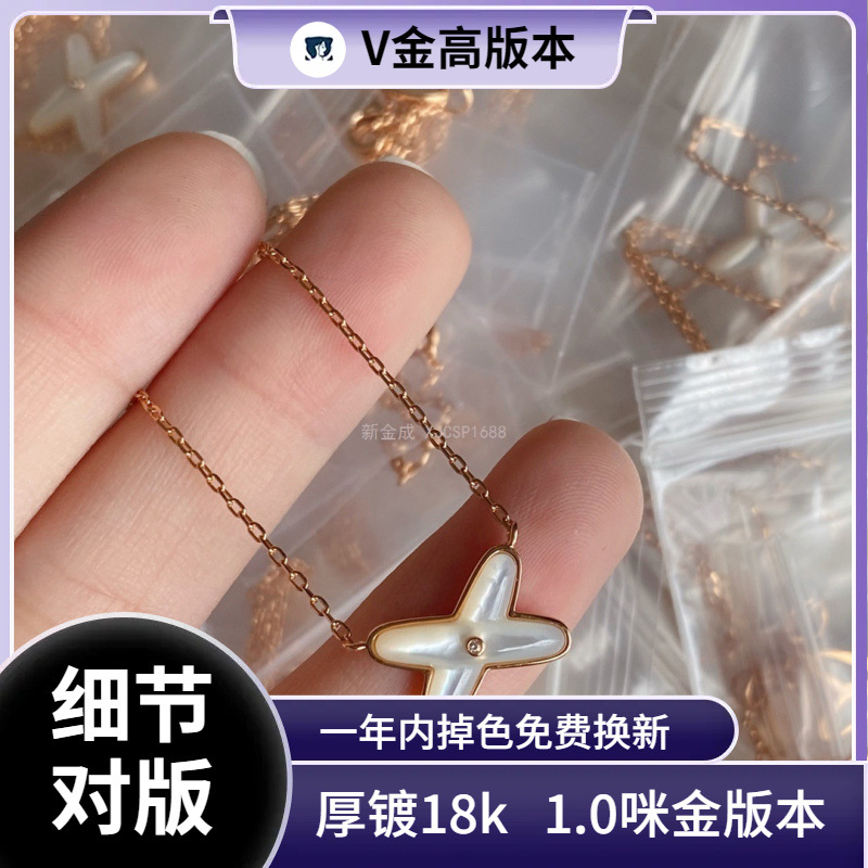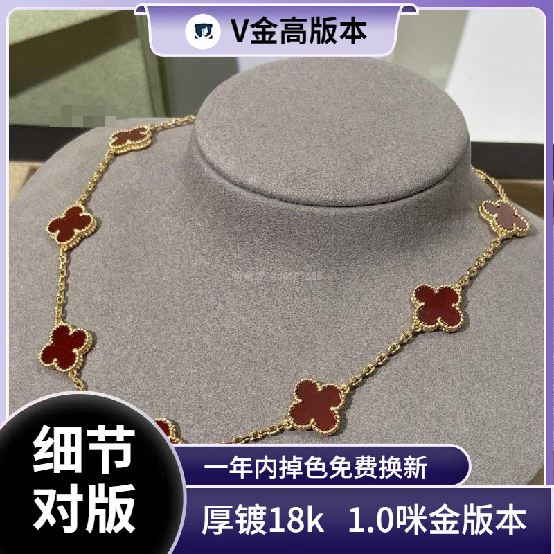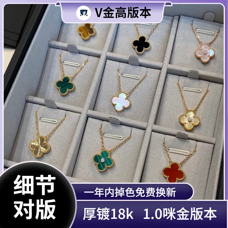 高版本V金四叶草手链渡18K金项链玫瑰红玉髓玛瑙白贝工厂直销