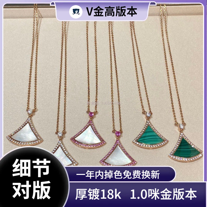 七夕裙子项链V金 高品质CNC精雕白贝母扇子孔雀石扇形锁骨链