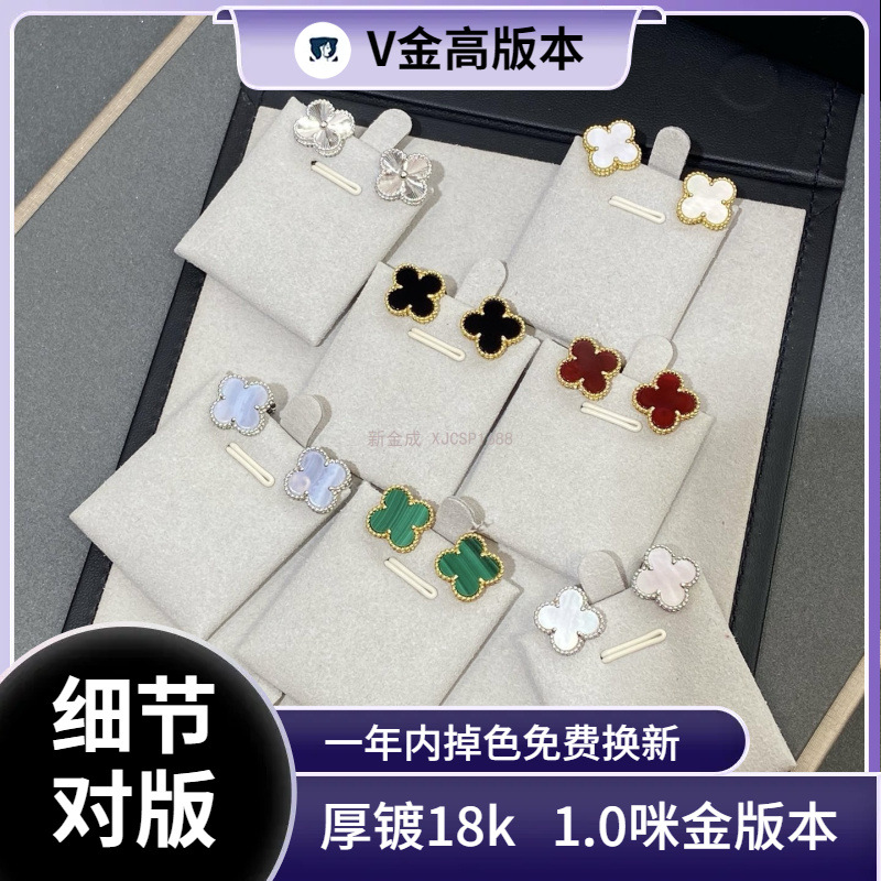 高版本V金四叶草耳钉女厚镀18K金百搭耳环 天然红玛瑙耳拍