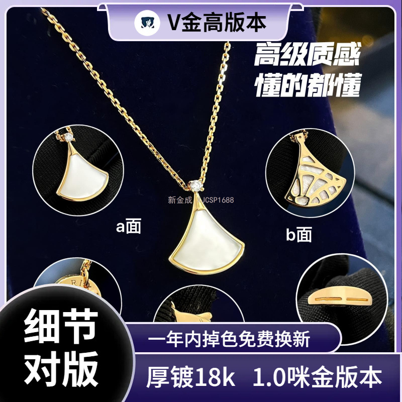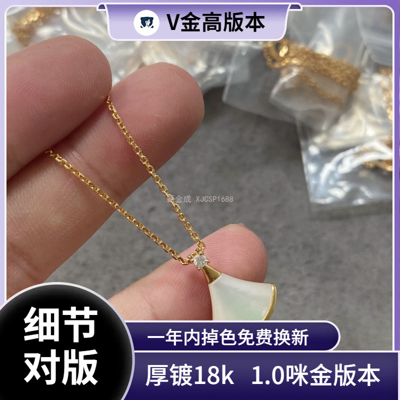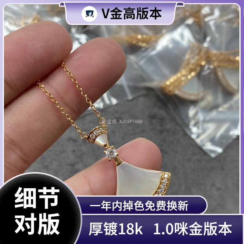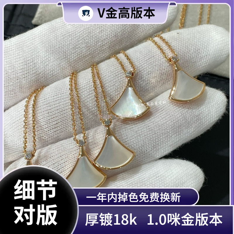 精工V金高品质新款小扇子小裙子项链女镀18K玫瑰金白贝母锁骨链版
