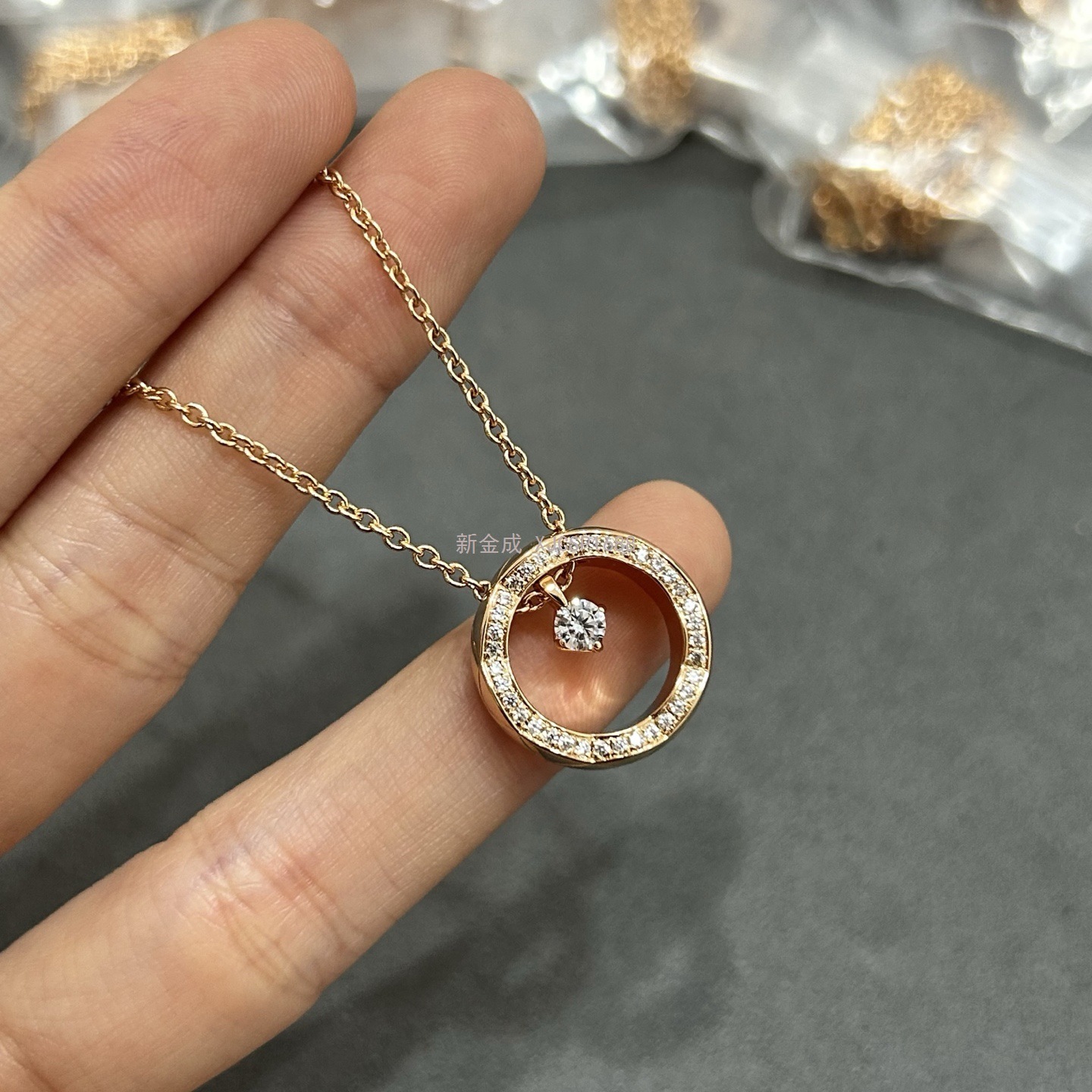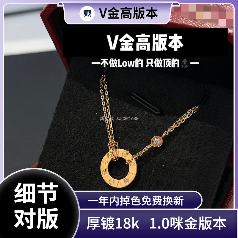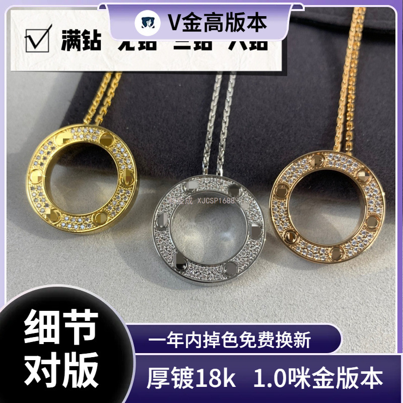 love系列大饼满钻满天星项链V金厚镀18K金圆饼吊坠锁骨链精工版