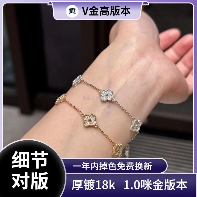 v金高版本四叶草五花手链天然紫玉髓镭射cnc精雕厚镀18K金不掉色