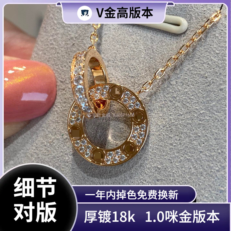 LOVE经典小饼满天星双环项链女厚镀18K玫瑰金时尚轻奢精工版V金