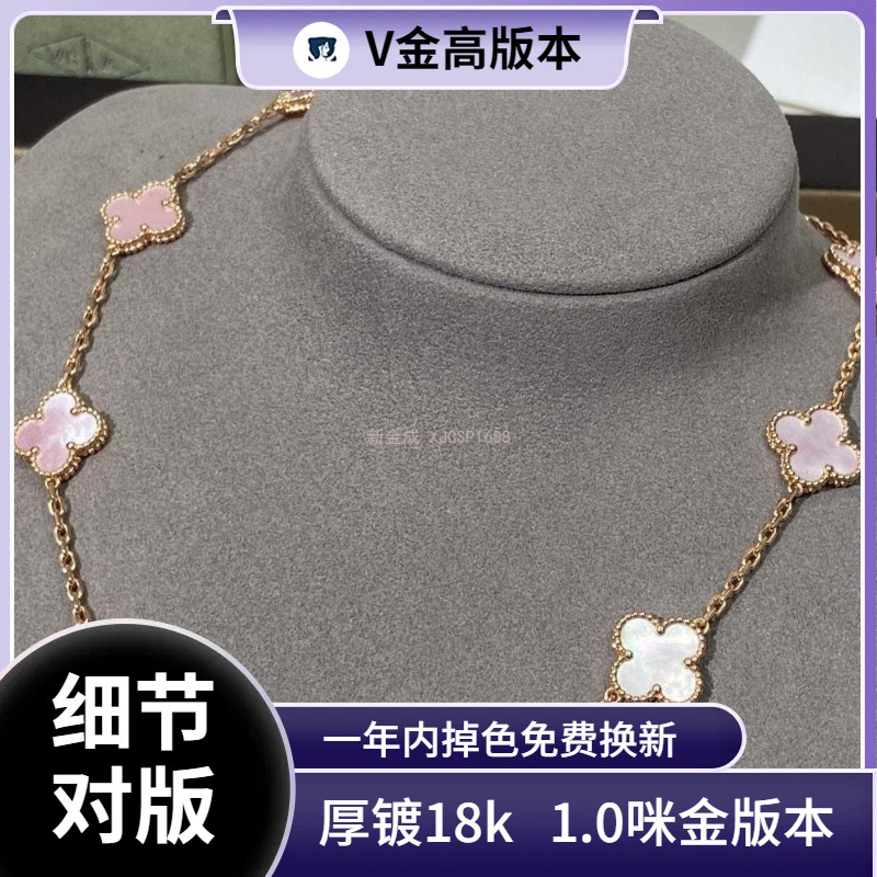 四叶草10花项链粉贝母女轻奢镀18k玫瑰金精工版时尚百搭工厂代发
