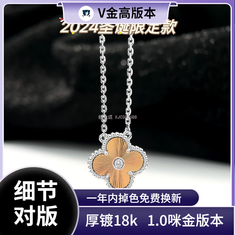 V金高版本梵家四叶草2024项链分色镭射带钻白金单花项链圣诞限定