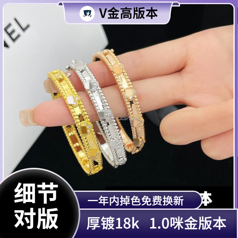 高版本V金CNC精雕万花筒窄版手镯女厚镀18K玫瑰金满钻四叶草手环