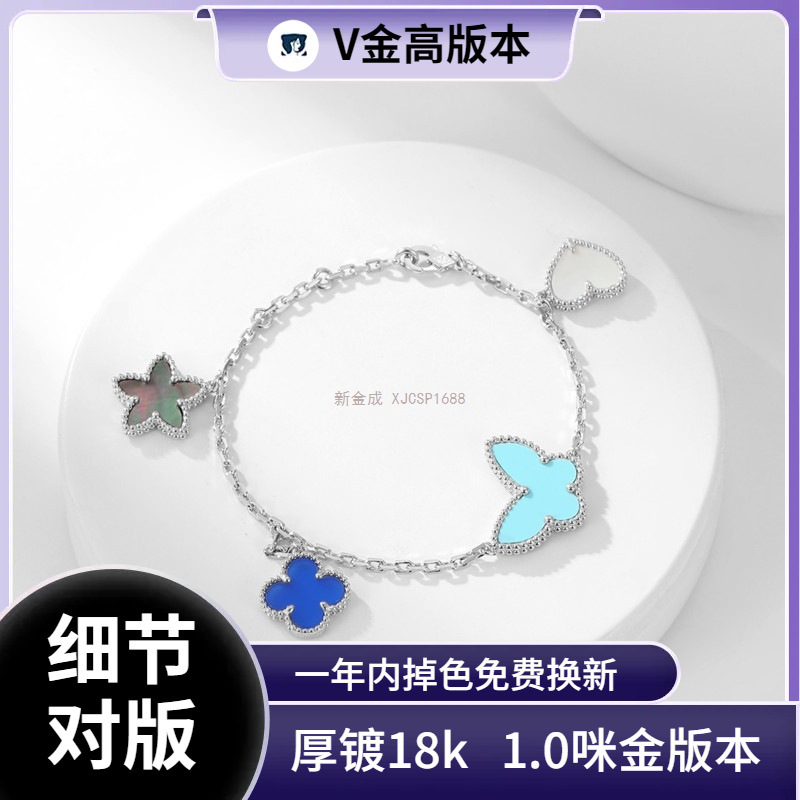 luck四花幸运手链女V金精工版本蝴蝶星星四叶草爱心镶嵌玉髓手饰