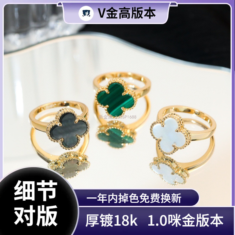 V金高版本厚镀18K咪金四叶草白贝母戒指无钻孔雀石时尚个性指环