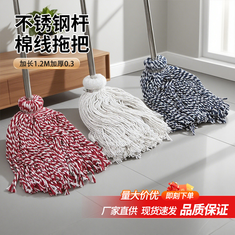 不锈钢杆棉线拖把老式棉线拖把耐脏加长加粗不打滑吸水拖把